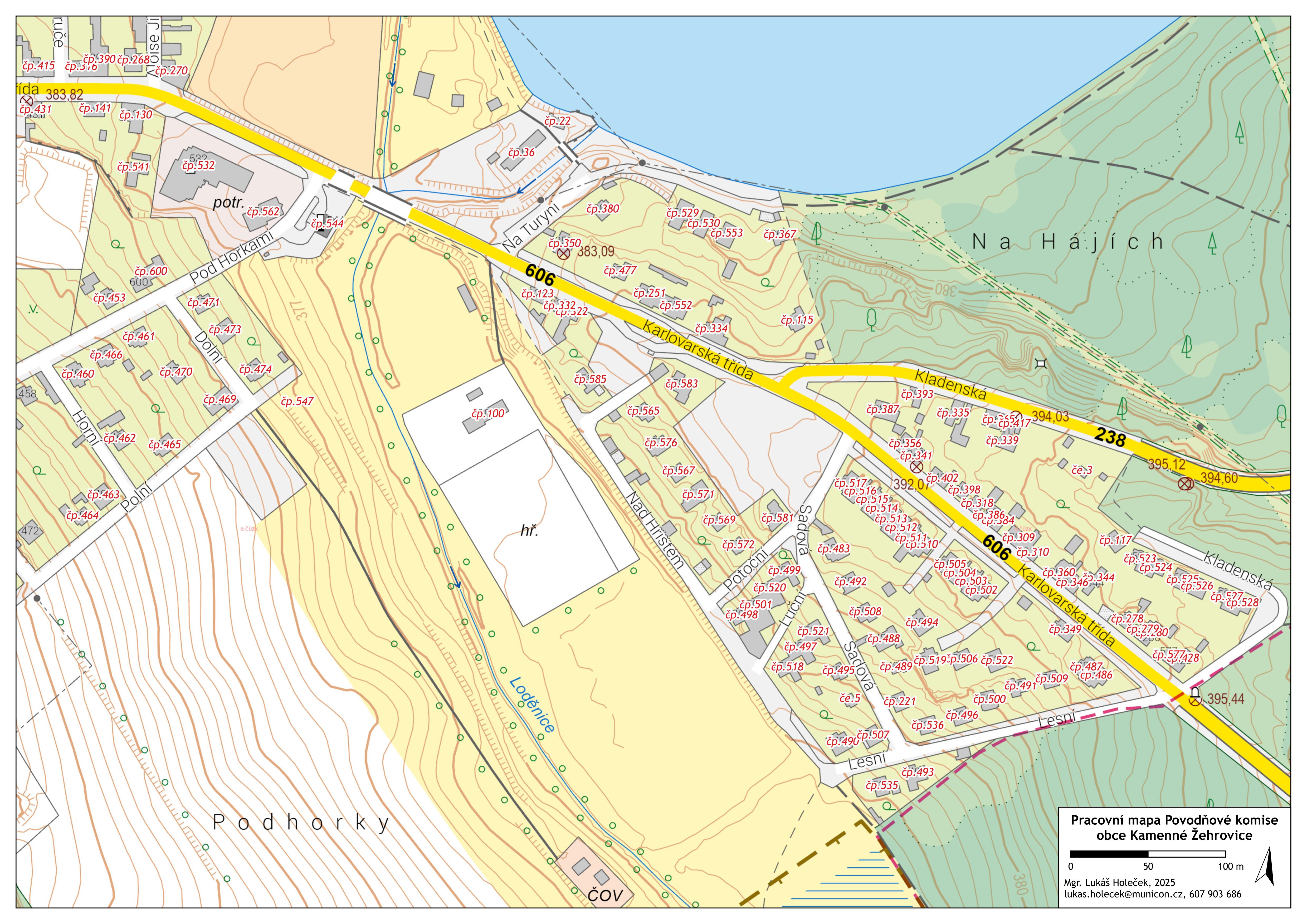 3. Pracovní mapy pro povodňovou komisi obce ve formátu A3 sloužící pro dokumentaci rozlivu při probíhající povodni, které obsahují domovní čísla ohrožených objektů v obci.