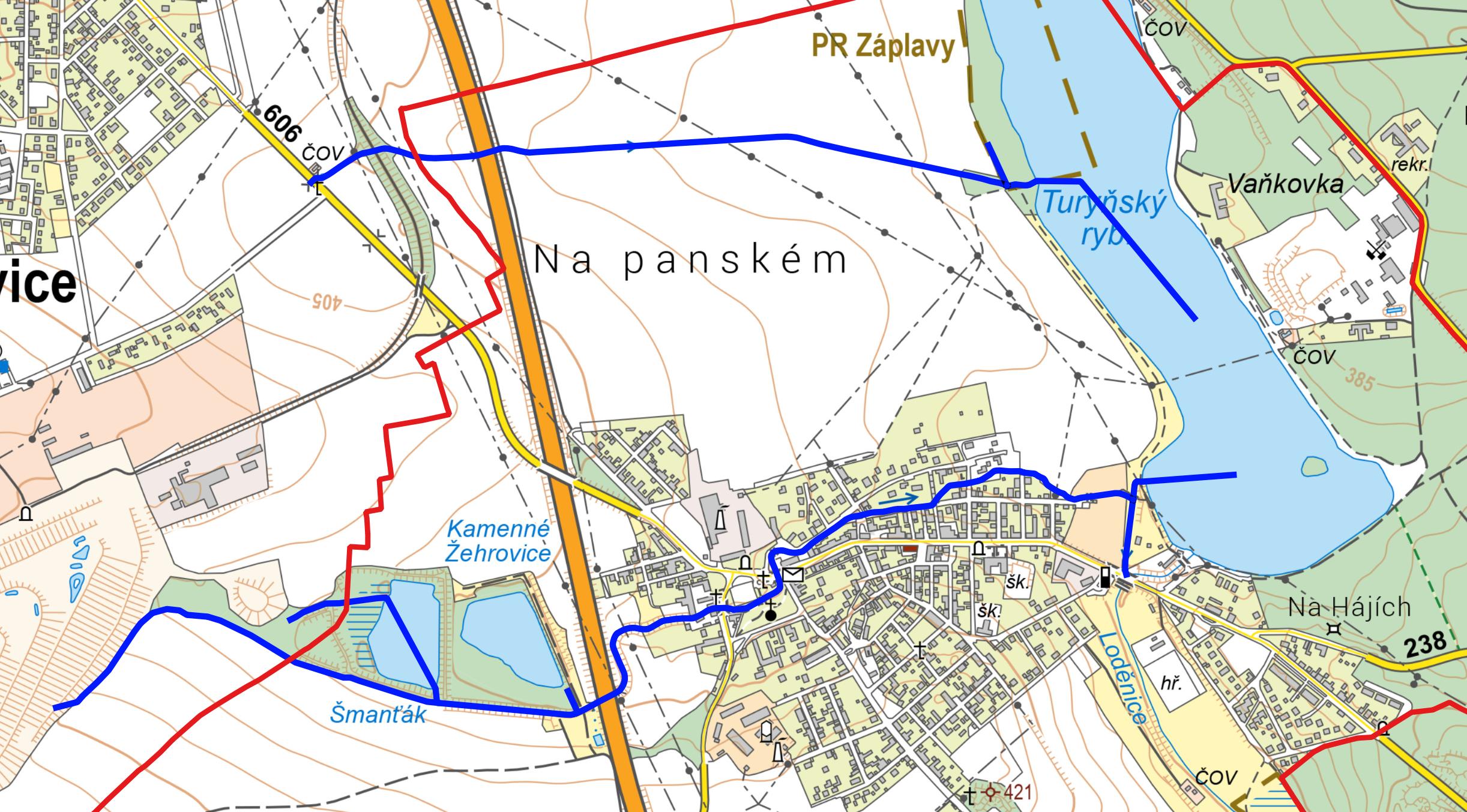 - ČHP v úseku procházejícím obcí Kamenné Žehrovice: 1-11-05-0110